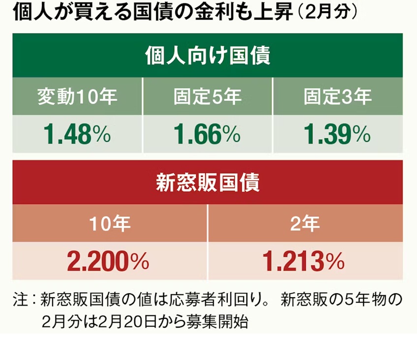 日本経済新聞電子版によれば、金利上昇に伴いネット証券経由での個人の国債購入が急拡大。大手3社(SBI証券、楽天証券、マネックス証券)での昨年後半の販売額は約1500億円と5年前の5倍に増えているそうです(図表も同紙から)。