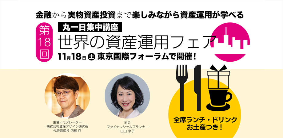 11月18日に開催される第18回世界の資産運用フェアでは、これからの日本人が知っておくべき資産運用について、1日でまるっと学べます。