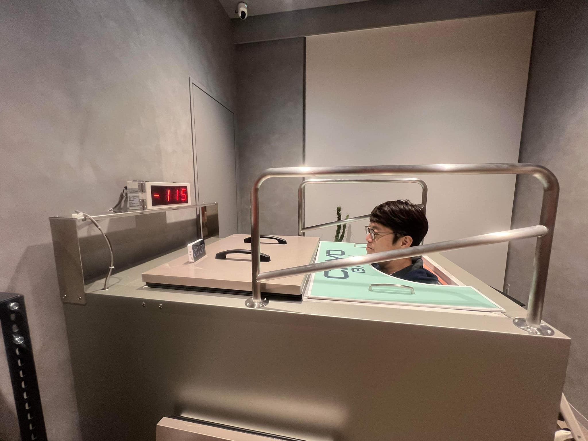 これは服を着たまま、体をマイナス115度の低温環境にすることで、筋肉疲労回復や血流の促進を行うものです。わずか3分ほど入っただけで、終わってからしばらく体の内部から暖かくなるのを実感しました。