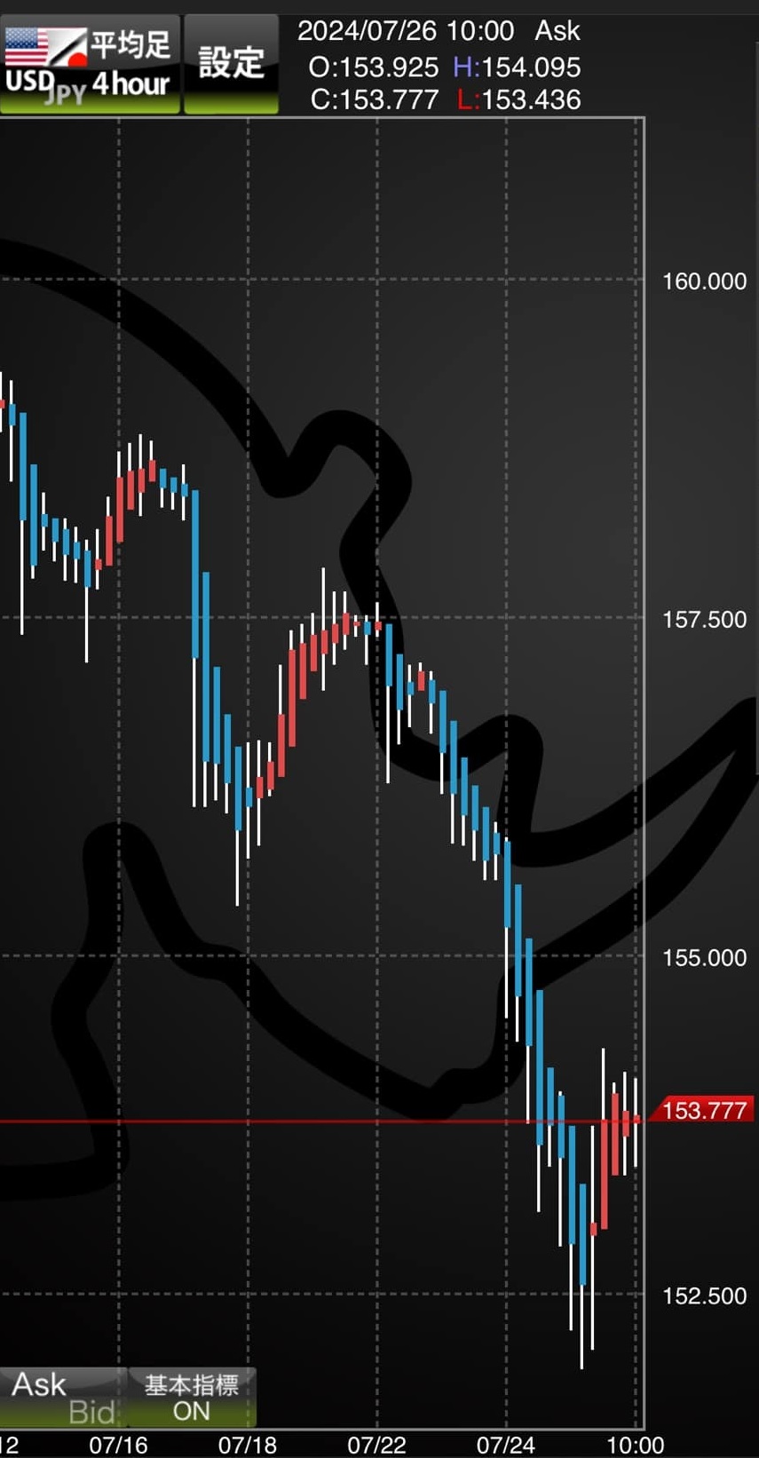 為替も本日は少し持ち直しましたが、ドル円で見ると、直近の最高値から10円以上の円高となっています(チャートはネットから)。