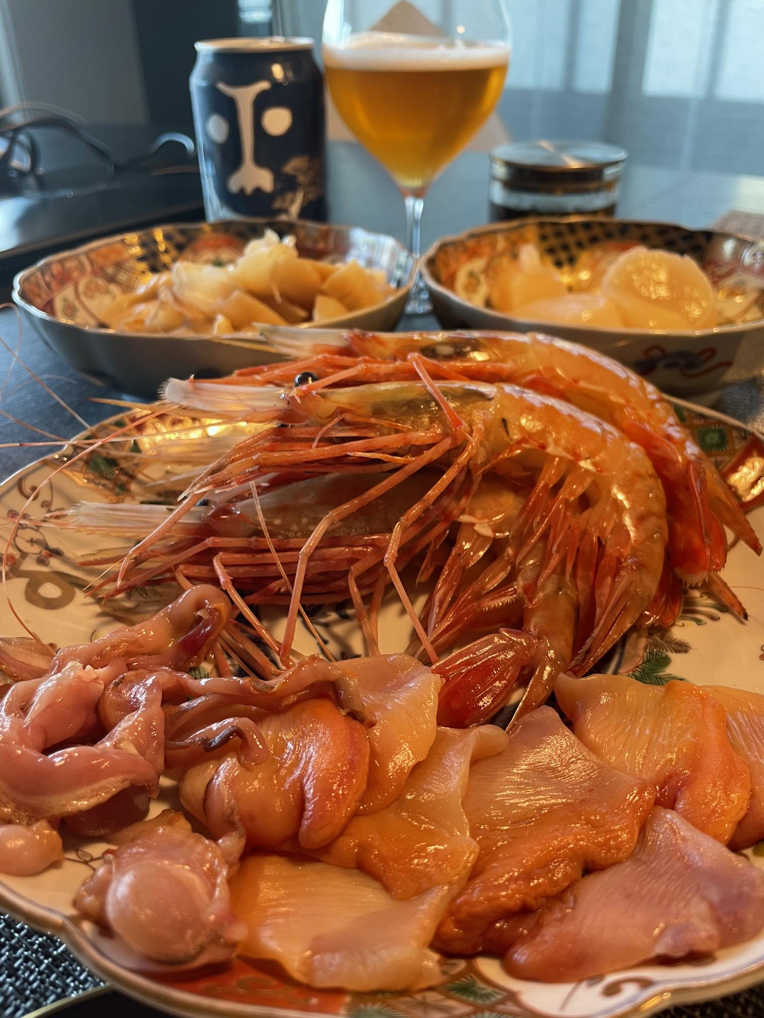 今回も、マグロ、白ミル貝、牡丹エビ、イワシ、サメの心臓(モウカ)、ほたてなど3万円近く購入して帰りました。自宅で海鮮祭りは最高です(写真)。
