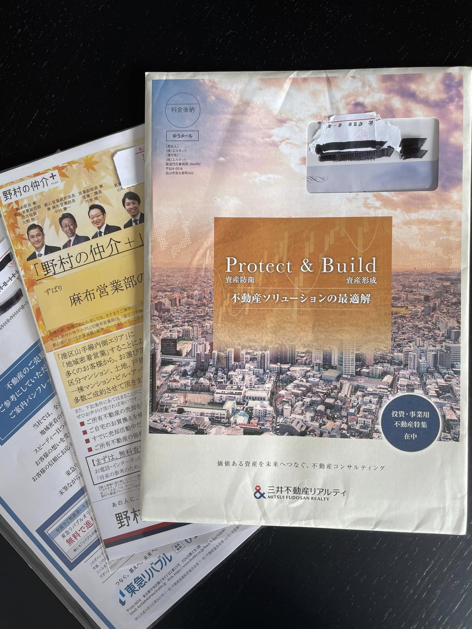 SDGsを標榜する大手不動産会社グループの仲介会社からは毎日のように大量のDMがポストに投函されています(写真)。こちらから資料依頼をした記憶はありませんから、登記簿謄本を調べて所有者の住所に手当たり次第に送ってきているようです。