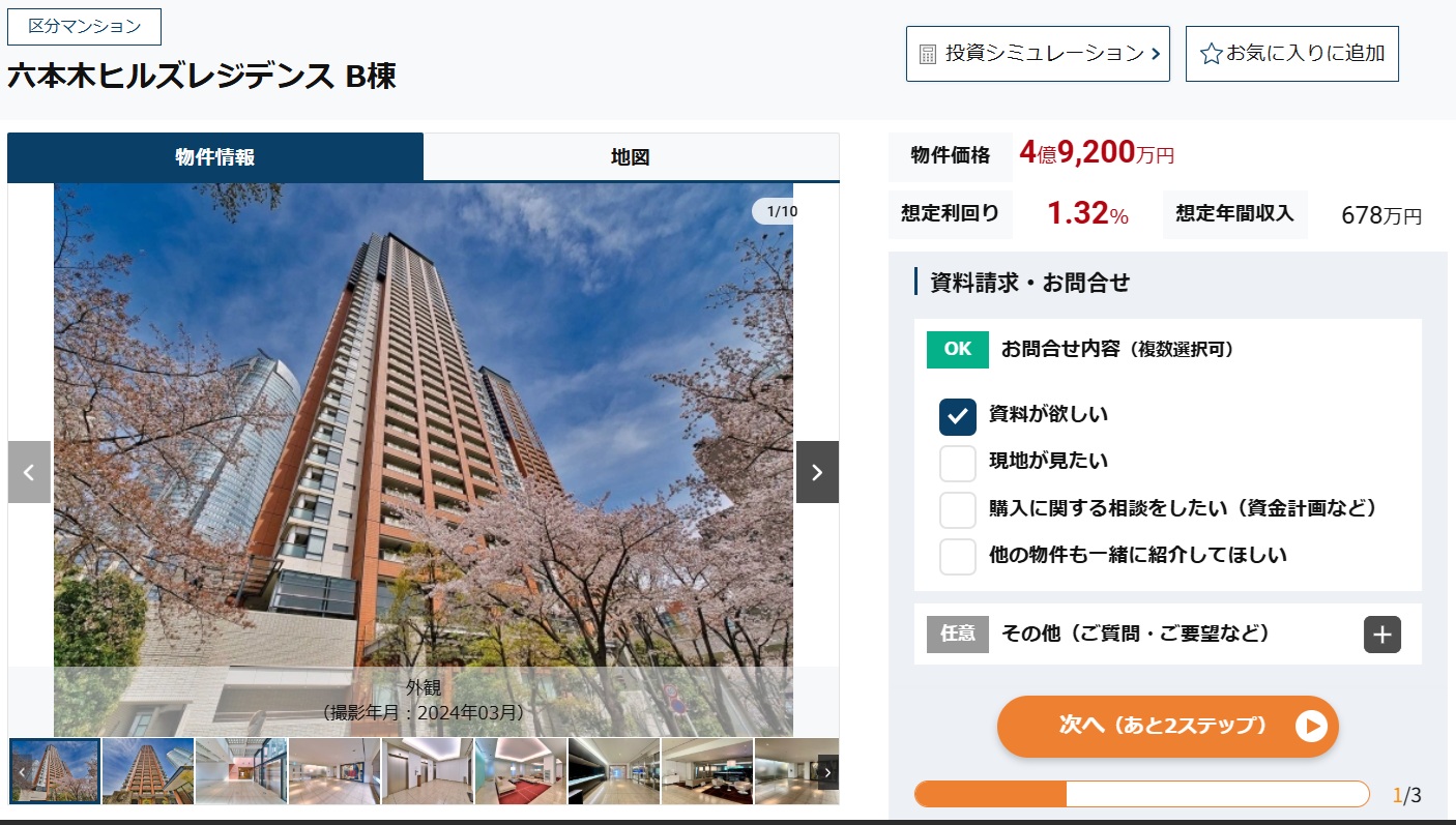 もちろん表示されている価格は希望売却価格ですから、実際に成約する金額とは限りません。物件価格は交渉の余地があって少しは下がるかもしれませんが、それでも投資対象としてはまた割高と言わざるを得ません。