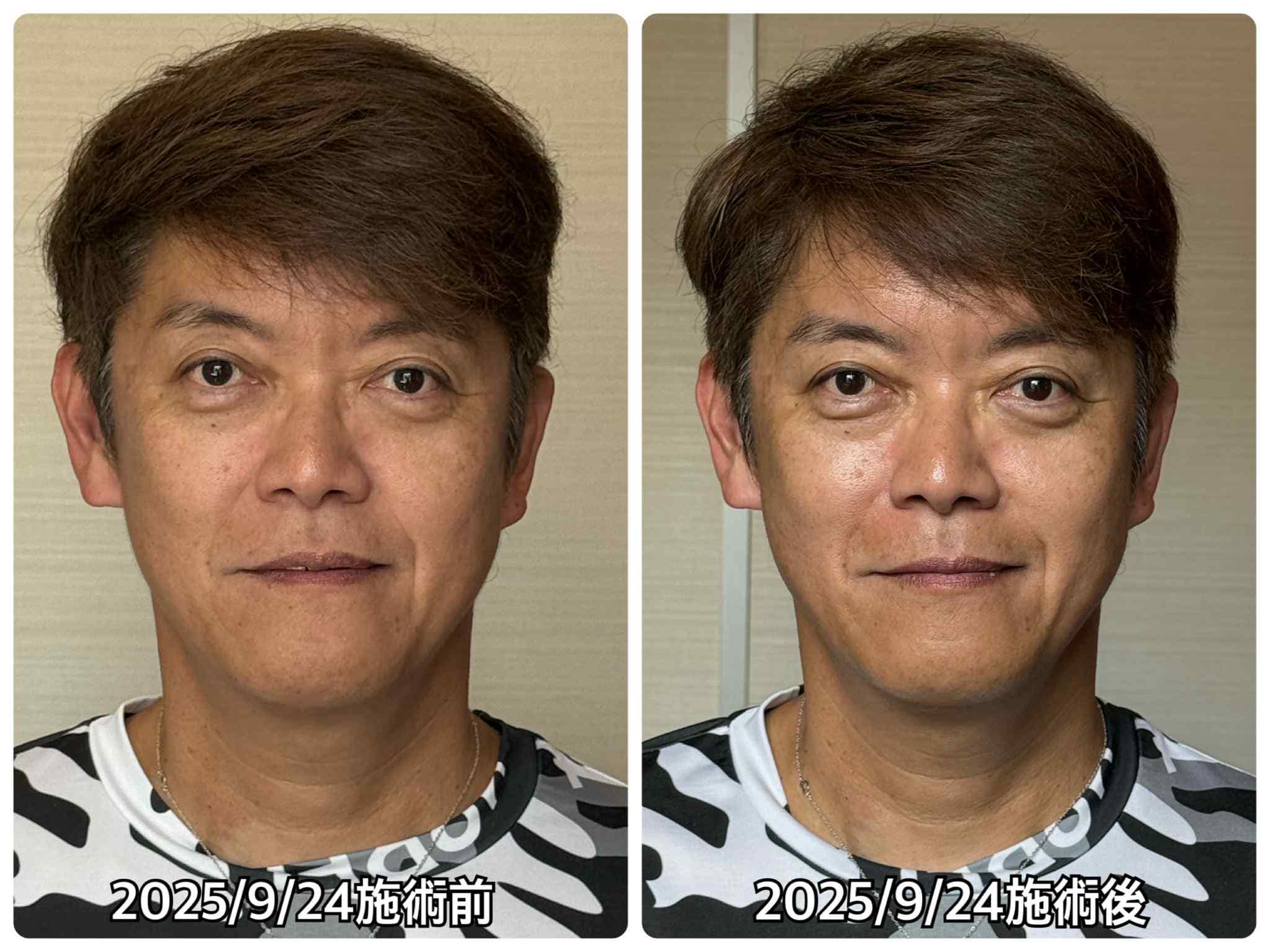 いつものように顔筋トレーニングを30分やってもらい、その後は顔のマッサージで筋肉のコリをほぐしていきます。終わるといつものように顔の輪郭がくっきりしてフェイスアップし、目の周りの筋肉の回復で目がぱっちりと大きくなっているのがわかります。