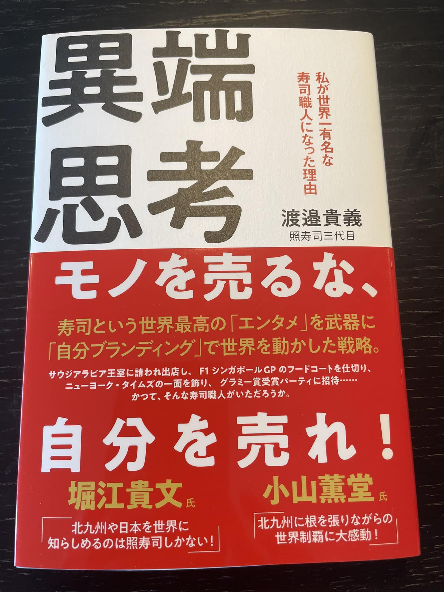 照寿司3代目渡邉貴義さんが書いた「異端思考」(写真)という新刊を拝読しました。照寿司とは北九州戸畑にある寿司店です。オーナーの渡邉さんは、Instagramのフォロワーが72万人。TikTokやFacebookなどを含めると今や130万人のフォロワーがいる「世界で最も有名な寿司職人」です。