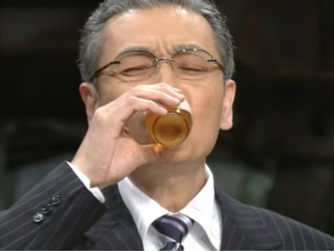 あるいは、2004年のニュースステーションの最終回では、生放送で最後に瓶ビールを開けて一気に飲み干して視聴者とお別れする(写真)。